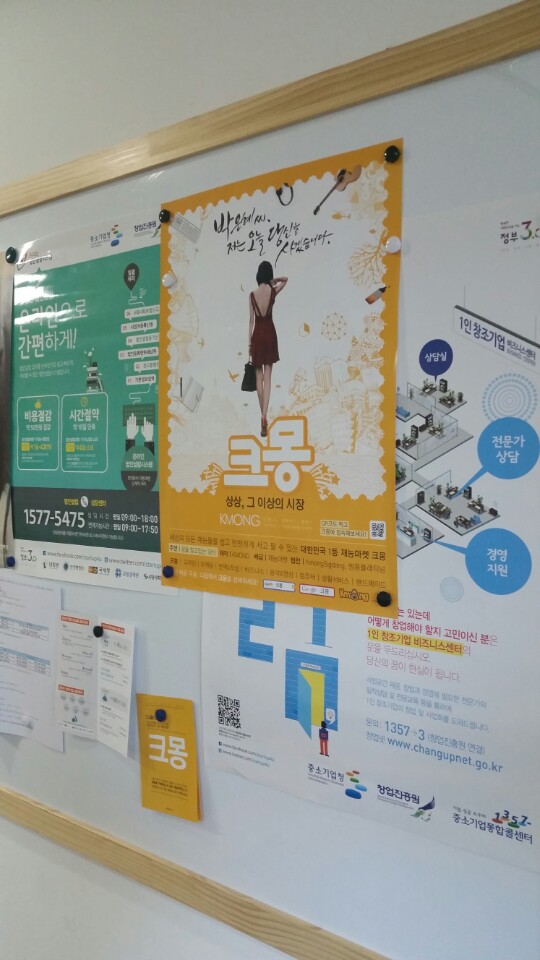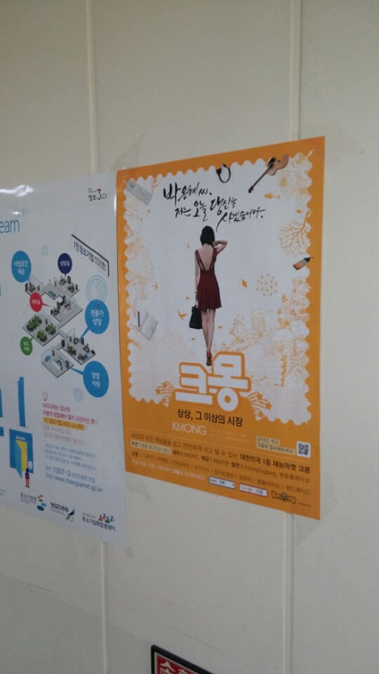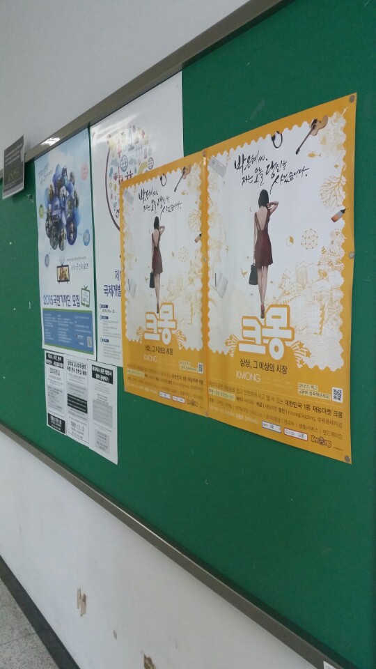 글이 많은 정보성 포스터 사이에 그림이 딱!!!!!!! 강조된 크몽의 포스터가 붙으니