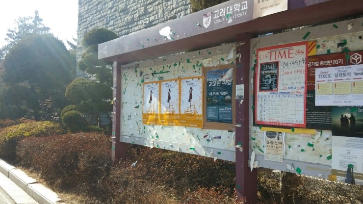 홍익대학교도 여느 대학과 다름없이 게시판에 허가를 얻고 챡 붙여줍니다.