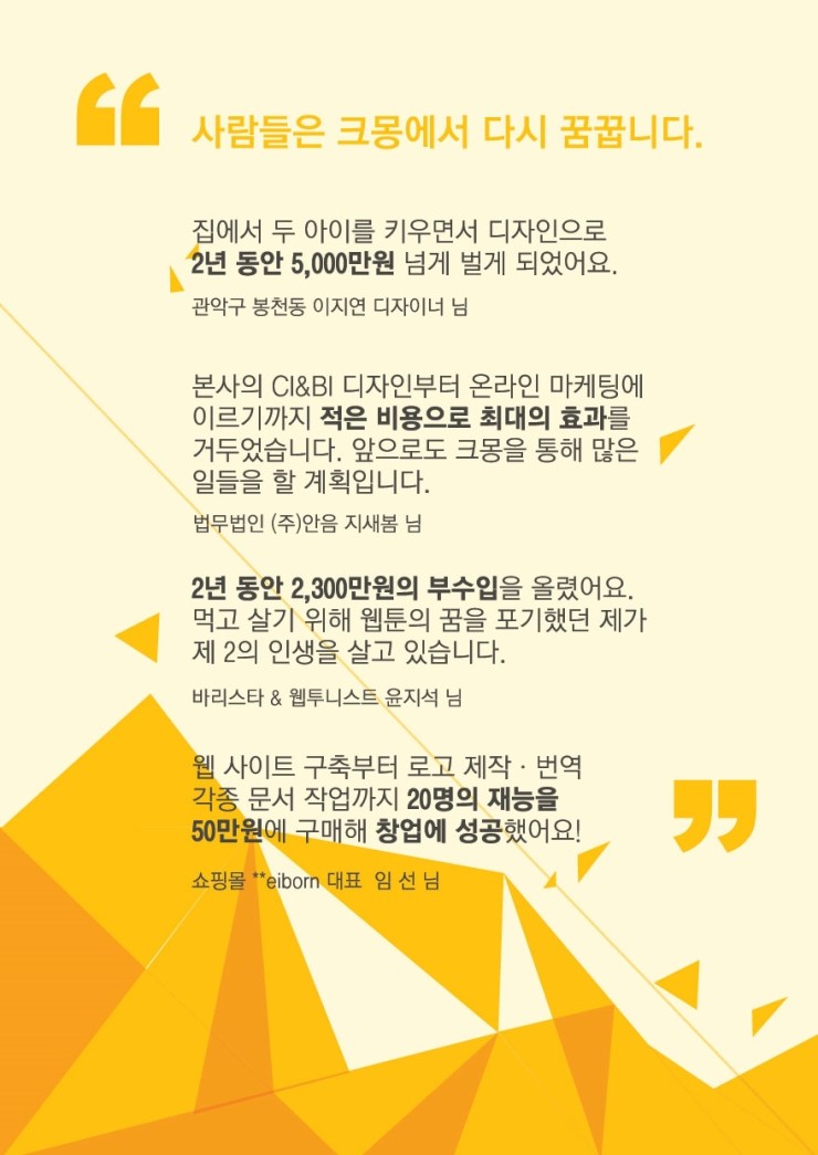 크몽팀에서 내누어드린 1차 프로모션 자료인 포스터와 브로셔가 궁금하시다면