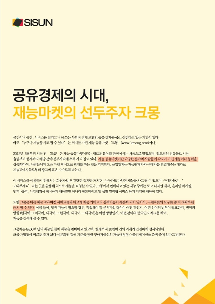 그리고 크몽의 색을 가장 잘 드러낼 수 있는 노란색으로 정해졌어요.