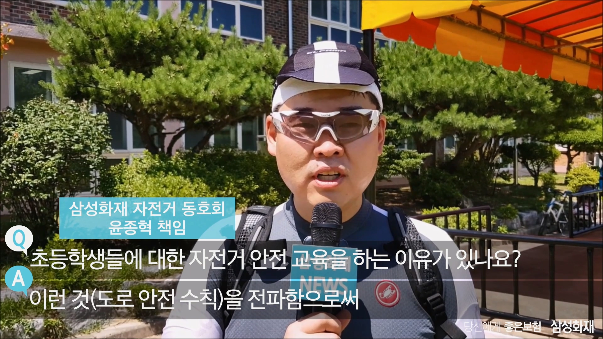 “학생들은 자전거를 타는 법만 알지, 기본적인 안전 수칙을 모르는 경우가 많거든요. 이런 것(도로 안전 수칙)을 전파함으로써 아이들이 더욱 재미있게 라이딩 할 수 있는 기회를 만들어주고 싶습니다. 이는 ‘안전’과 ‘안심’이란 저희 회사 업과도 일치하는 활동이라 생각합니다.”