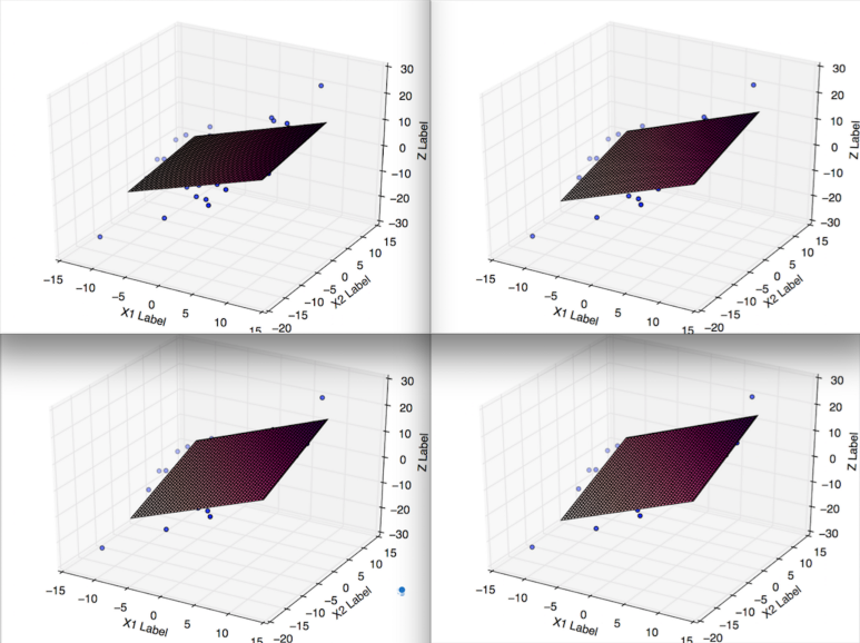 이번에는 x1, x2 두가지 변수를 갖는 다중 회귀 분석을 살펴보겠습니다.