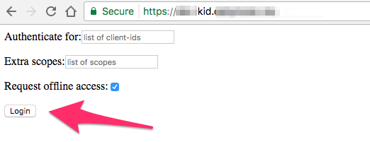 웹브라우저로 kid에 방문해서 토큰을 받는다. 첫 화면에서 Login 버튼을 누른 후 GitHub 로그인을 하면 토큰이 나온다.