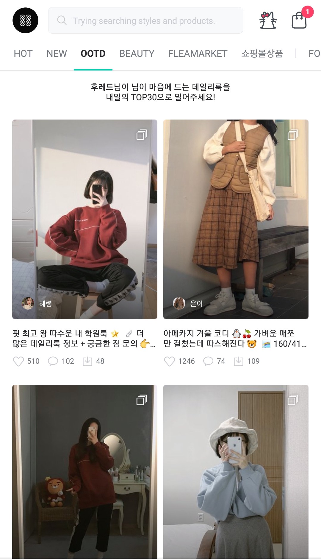 덕분에 유저들이 올린 콘텐츠 중 데일리룩이라는 범주에 속하는 콘텐츠를 잘 뽑아낼 수 있었습니다.
