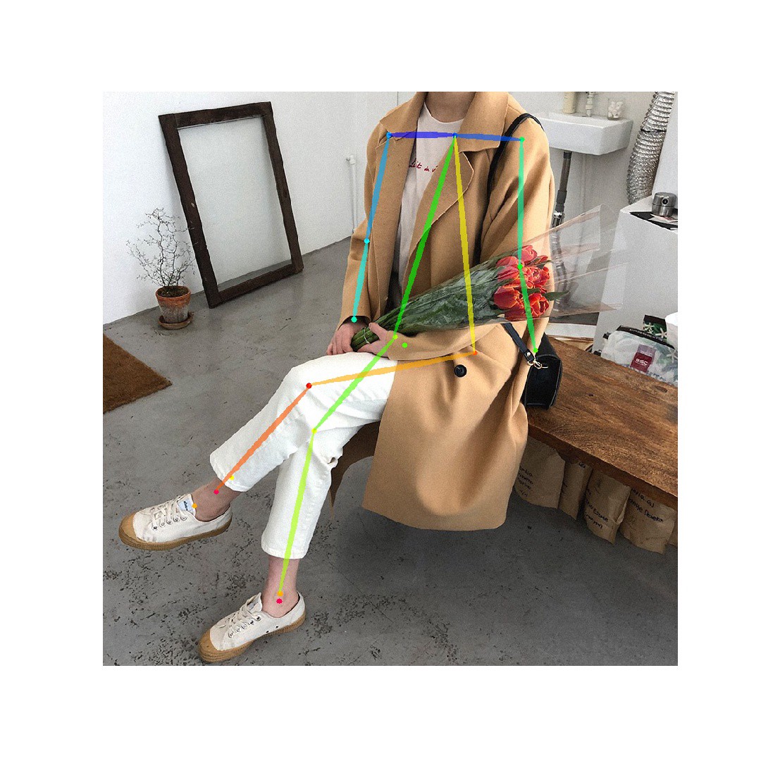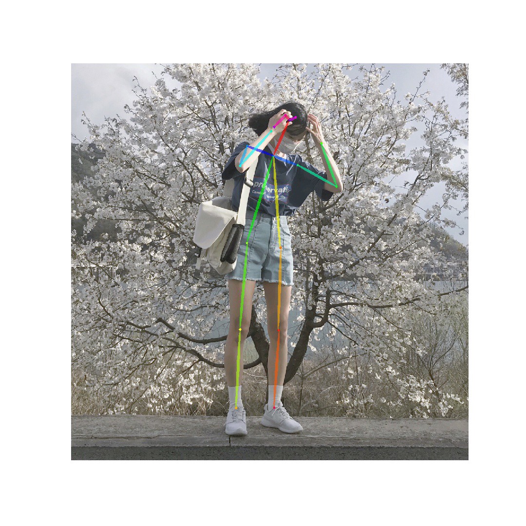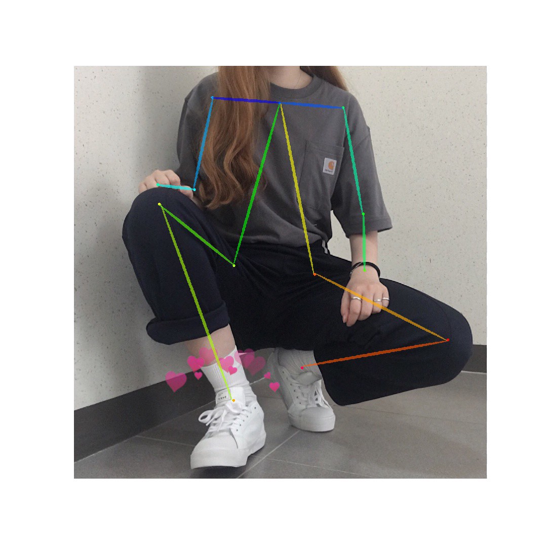 아래는 위의 과정을 거쳐서 Pose Estimation까지 처리되어 데일리룩 사진이라고 판별된 이미지입니다.