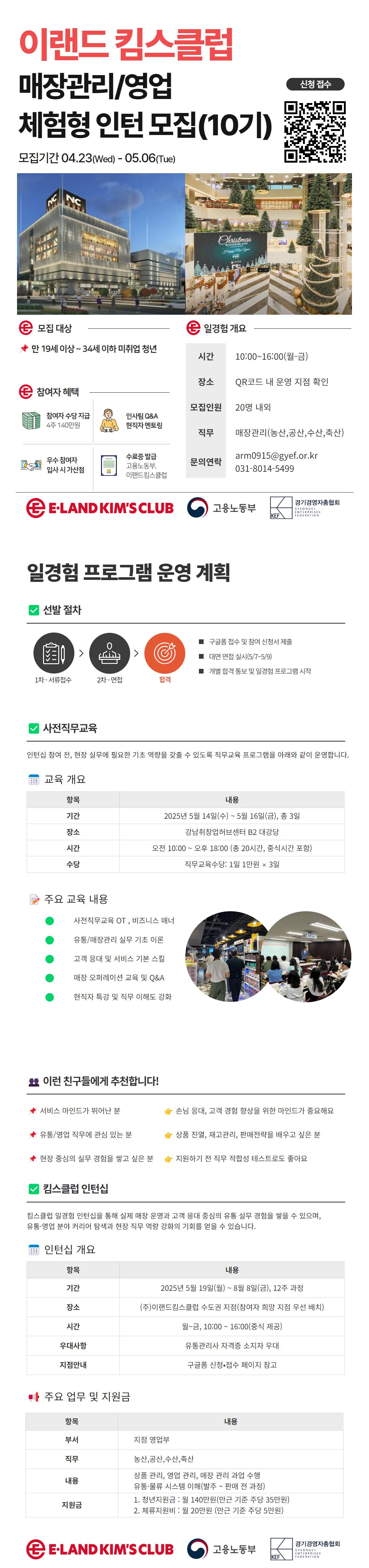 (주)이랜드킴스클럽 영업/매장관리 일경험 인턴 모집[10기]