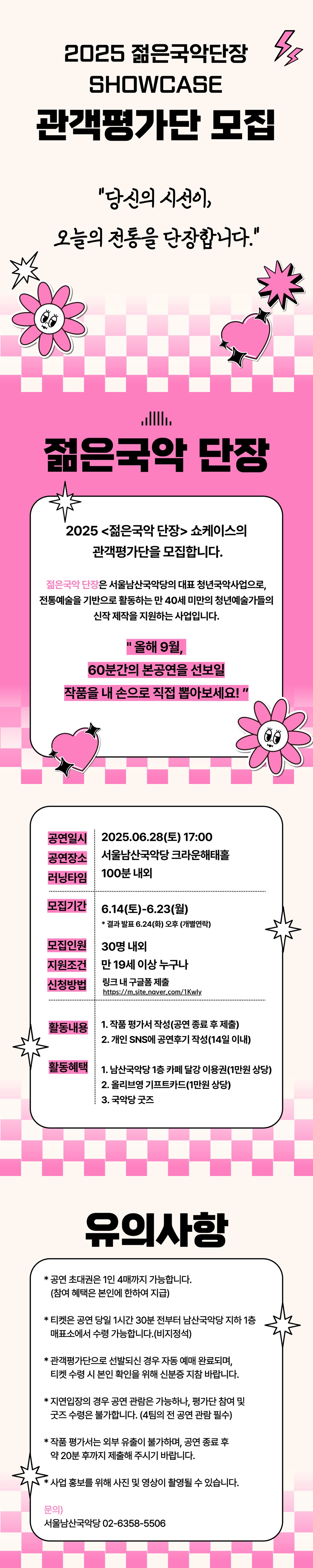 [서울남산국악당] 2025 젊은국악 단장 SHOWCASE 관객평가단 모집