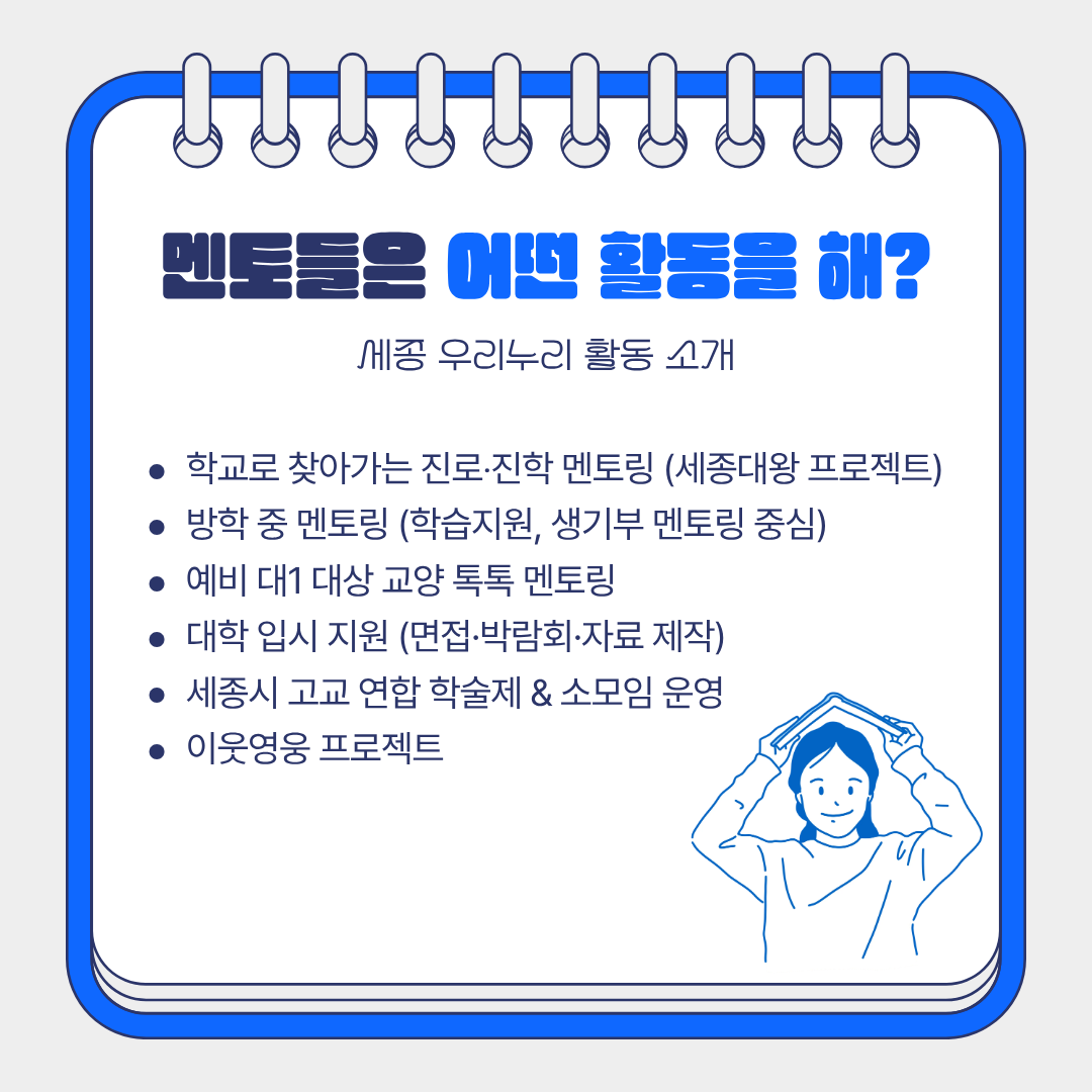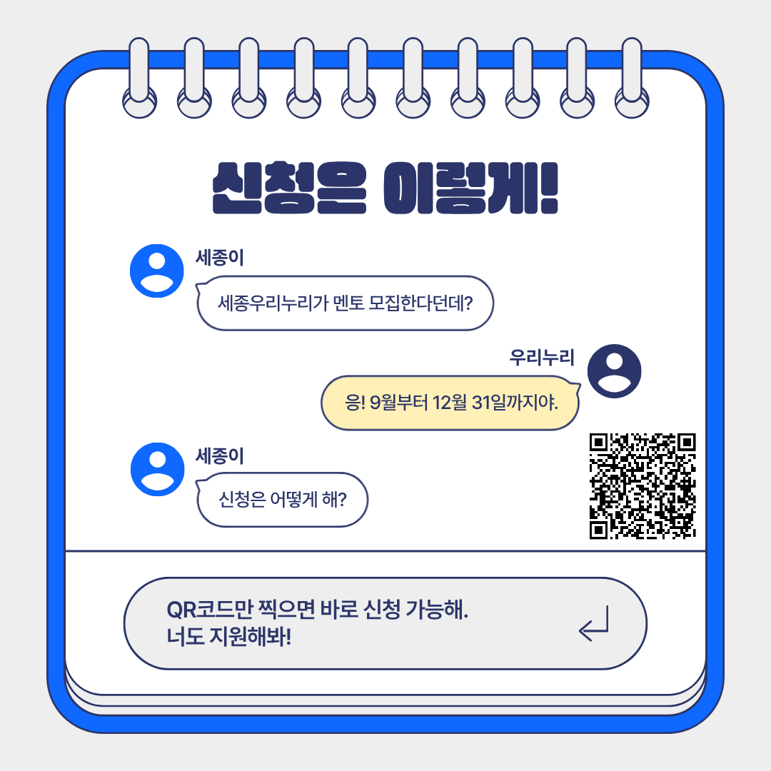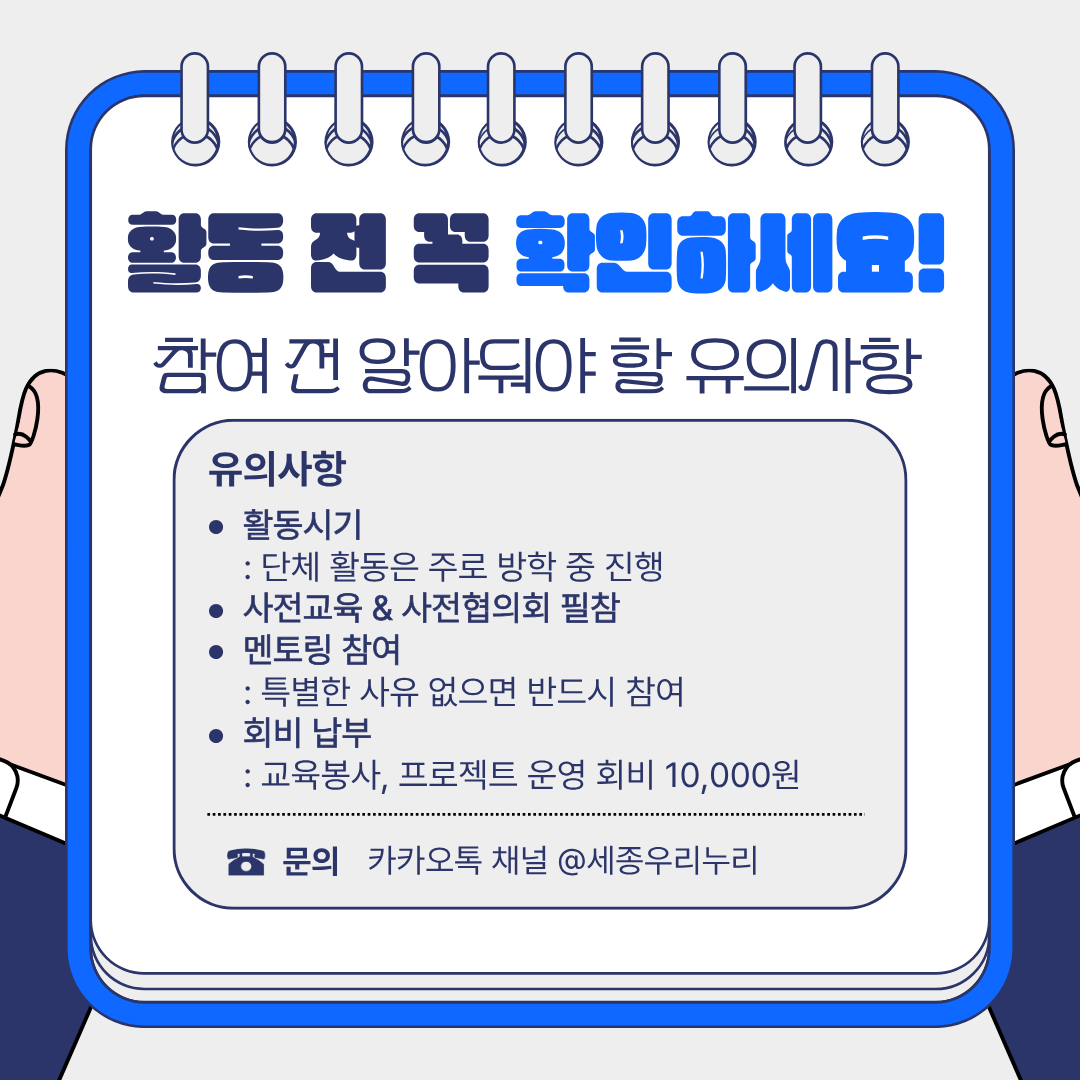 💙교육봉사단체 ‘세종 우리누리’에서 17기 멘토 및 임원진을 모집합니다💙