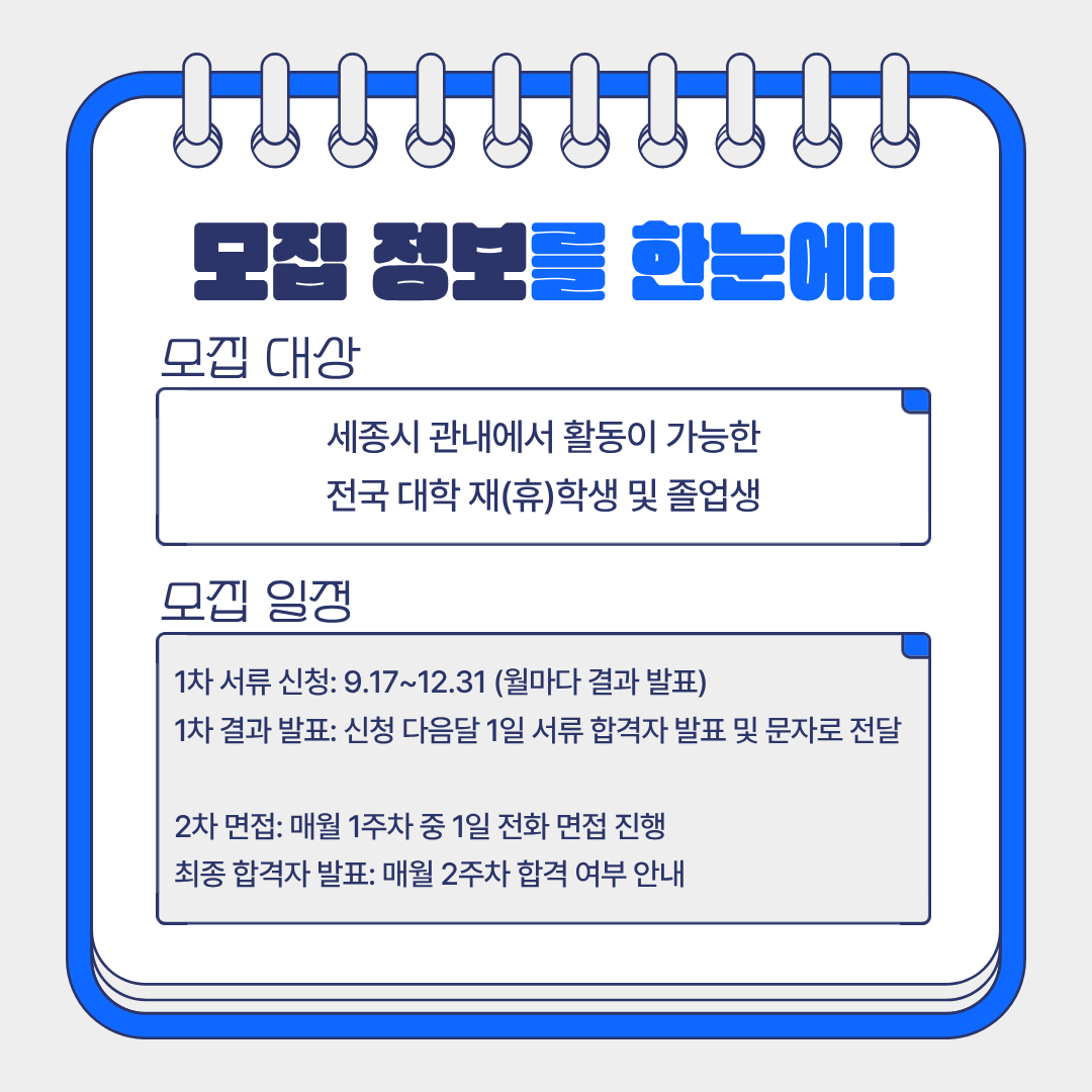 세종시 관내에서 활동 가능한 전국 대학 재(휴) 학생 및 졸업생