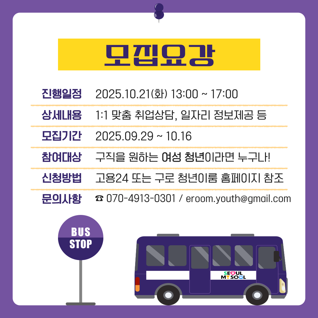🚎 구로 청년이룸 × 구로여성인력개발센터 : 일자리부르릉 버스 타고, 내일 찾자! 🚎