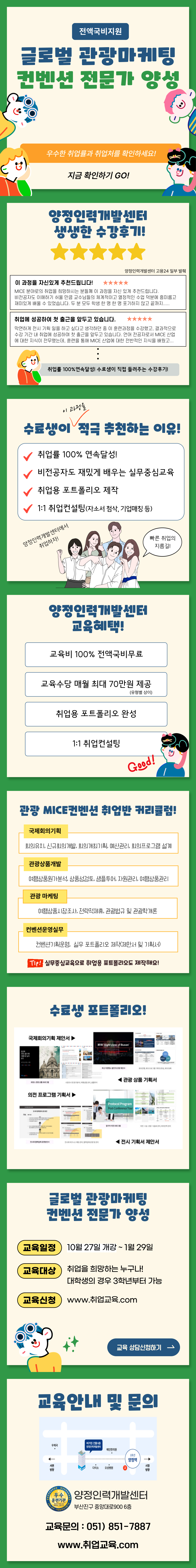 🚨이제는, 관광·MICE컨벤션 전문가로 양정인력개발센터에서 시작하세요!