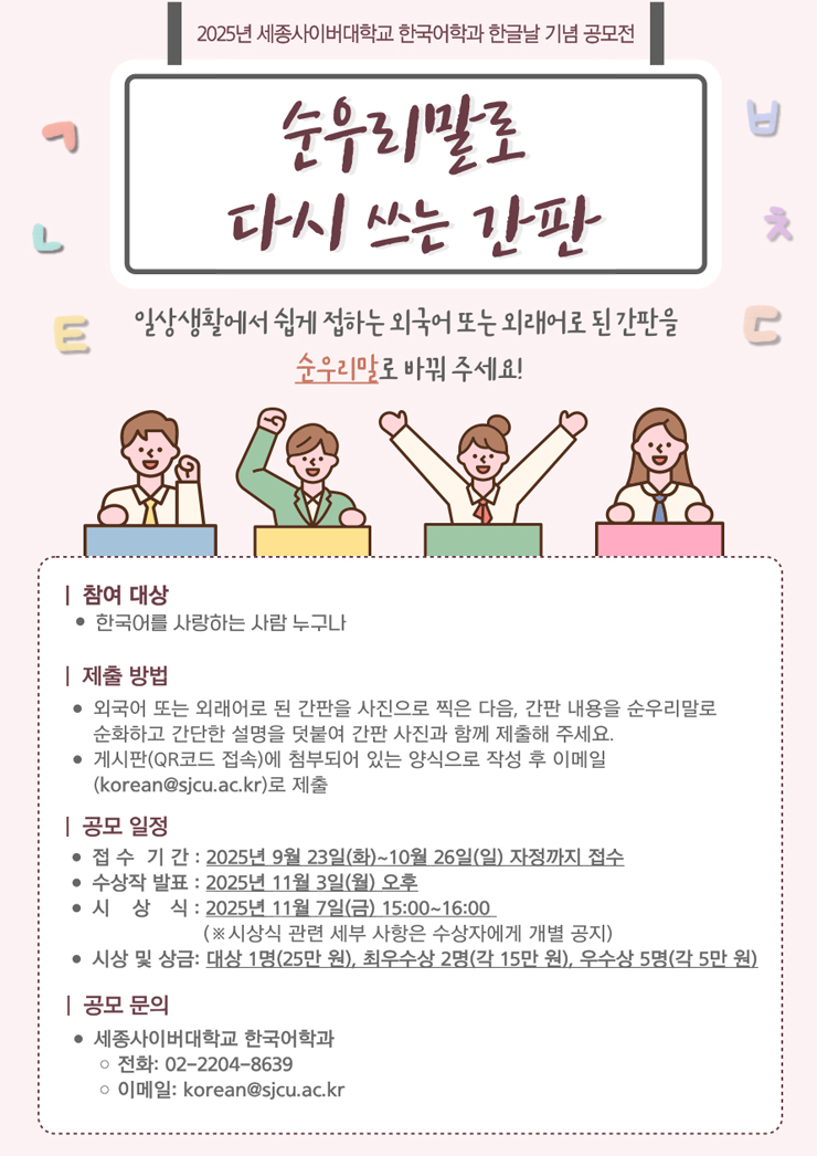 2025 한글날 기념 세종사이버대학교 한국어학과 공모전2025 한글날 기념 세종사이버대학교 한국어학과 공모전