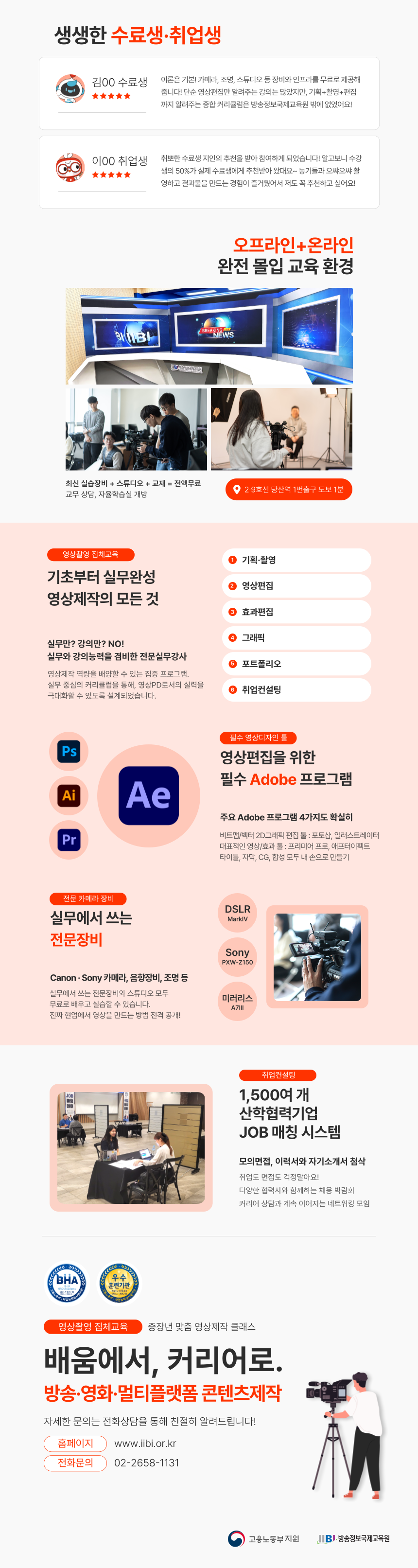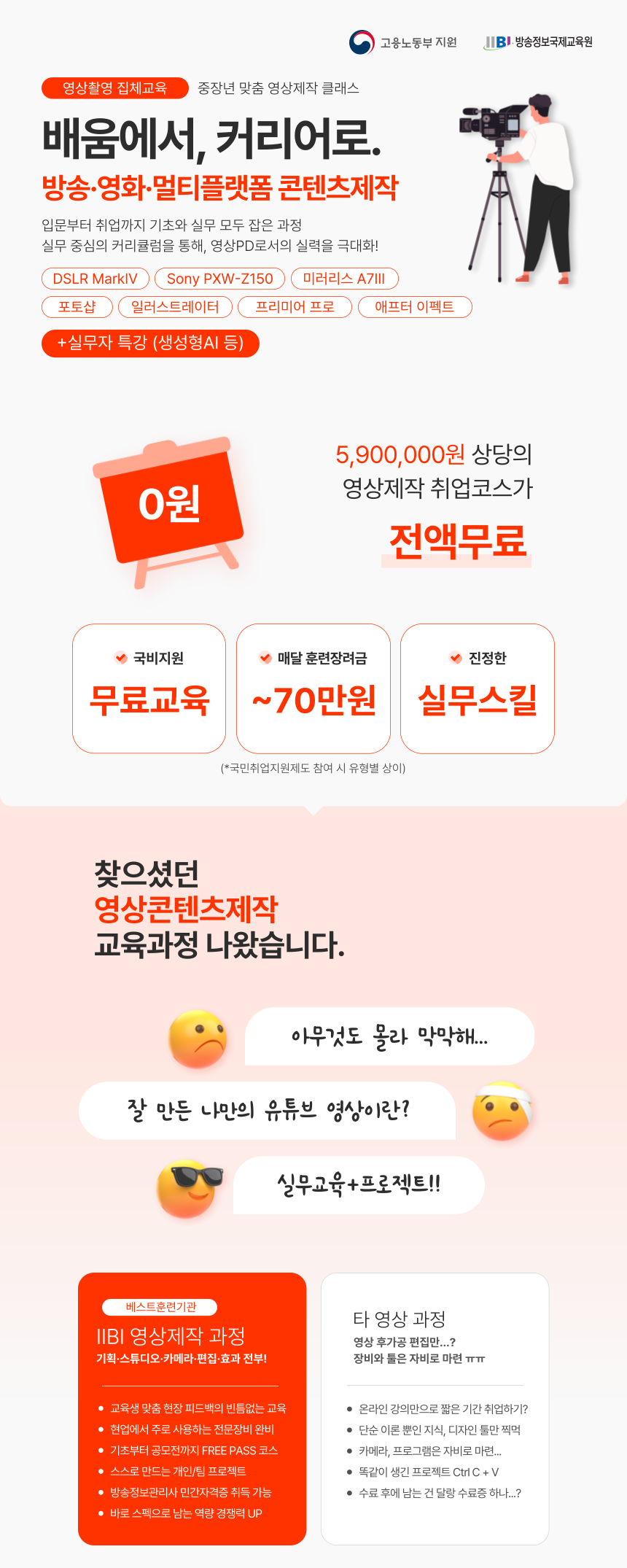 영상제작 국비무료 중장년 교육생 모집 [전액지원 무료교육]
