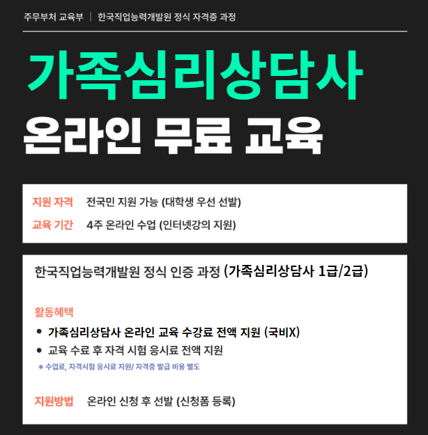 가족심리상담 무료교육 (4주 온라인 자격증 취득까지)