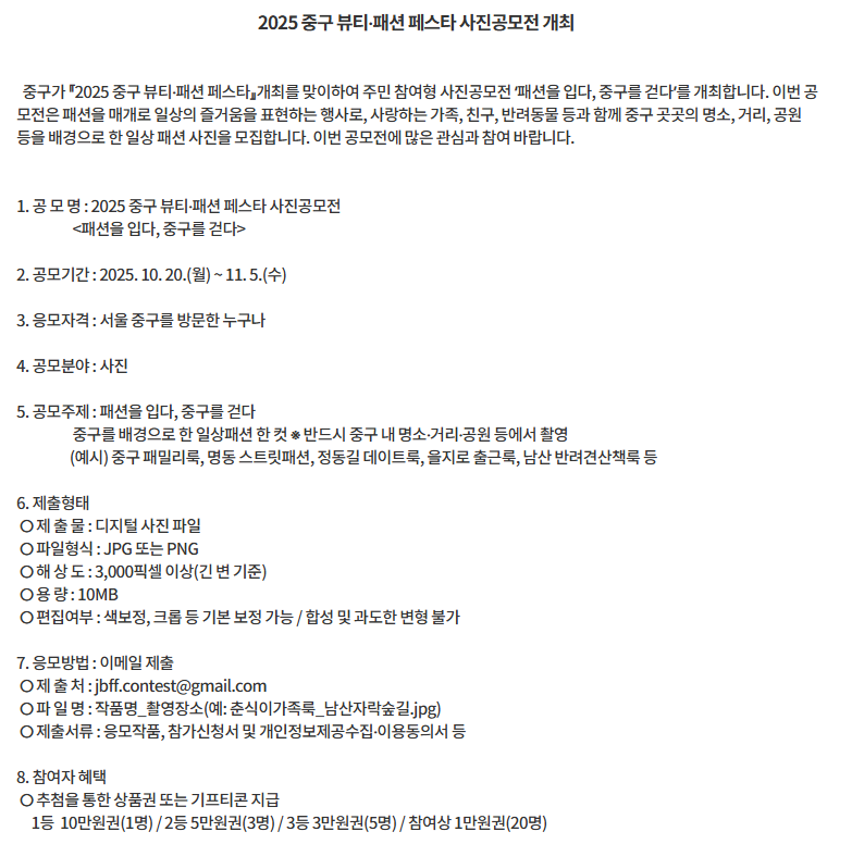 2025 중구 뷰티·패션 페스타 사진공모전 개최2025 중구 뷰티·패션 페스타 사진공모전