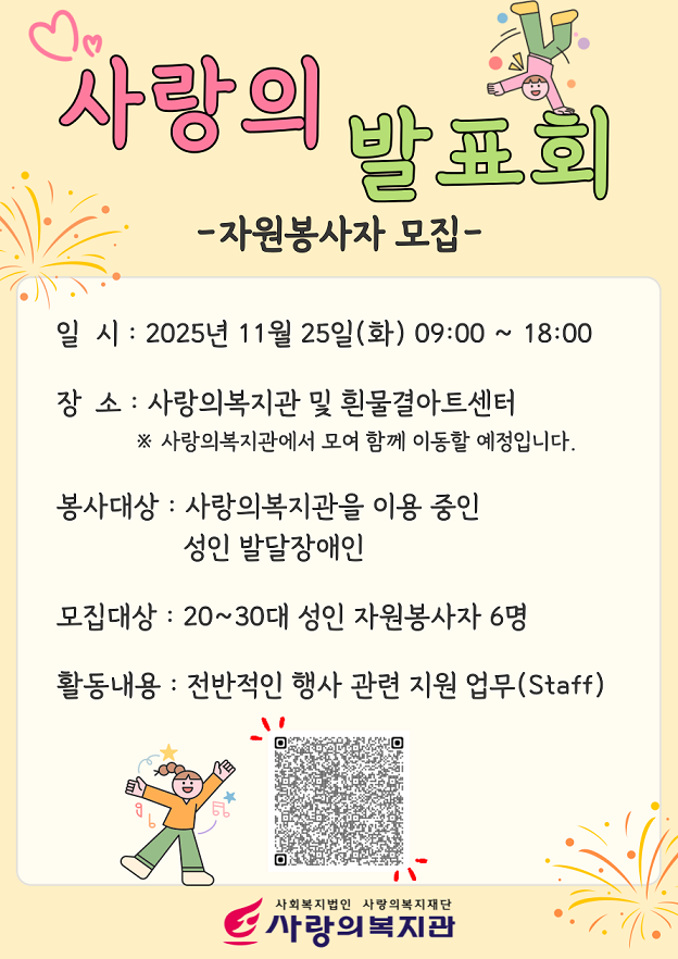 3. 봉사 대상 : 사랑의복지관을 이용 중인 성인 발달장애인