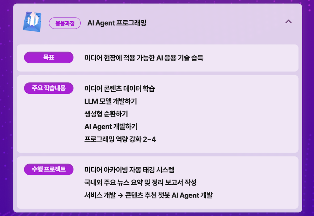 - 프로젝트 : 미디어 검색 에이전트, 빅데이터 분석과 LLM 기술 활용한 트렌드 예측 에이전트 서비스 개발, 콘텐츠 자동 분류/색인 시스템