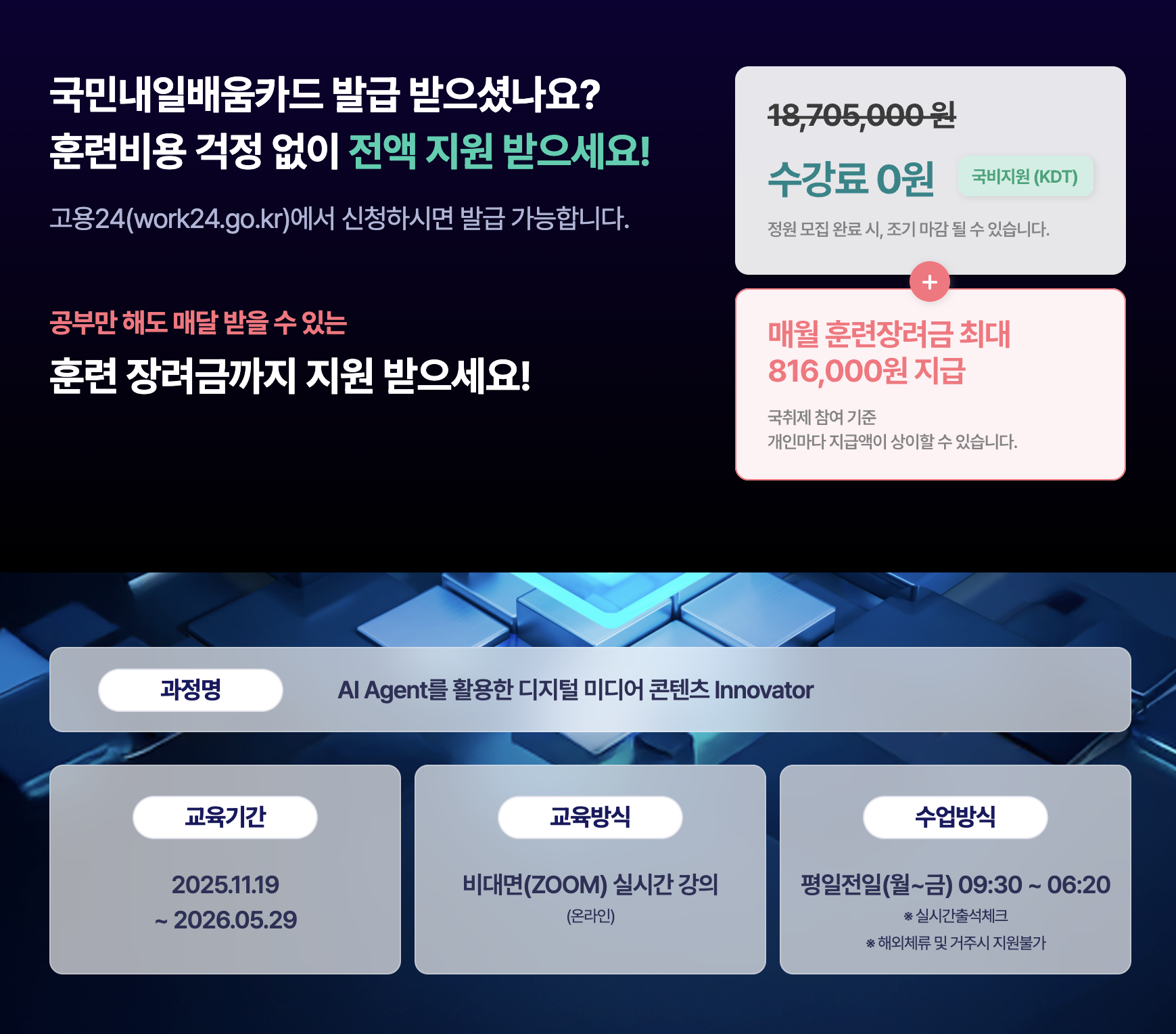 - 수강료 전액무료 ( 18,705,000원 전액지원)