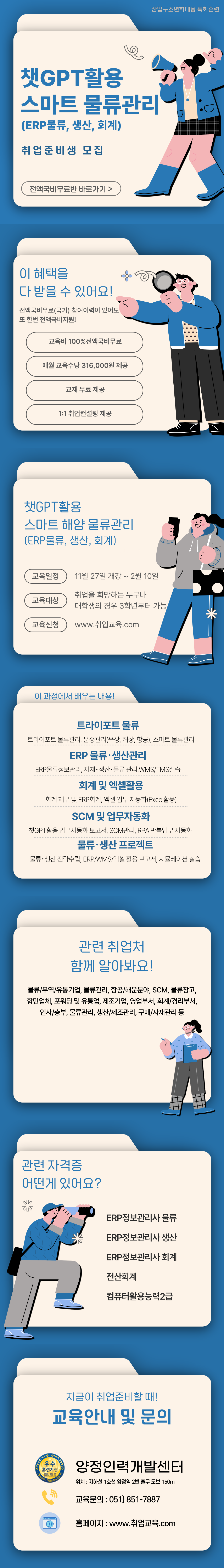 - 과정명 :챗GPT를 활용한 스마트 해양 물류관리(ERP물류, 생산, 회계)