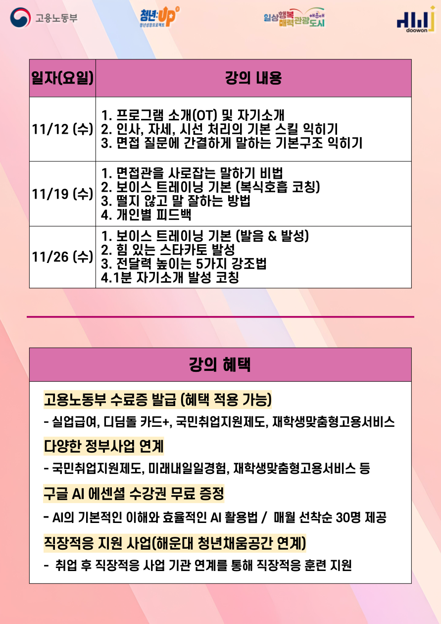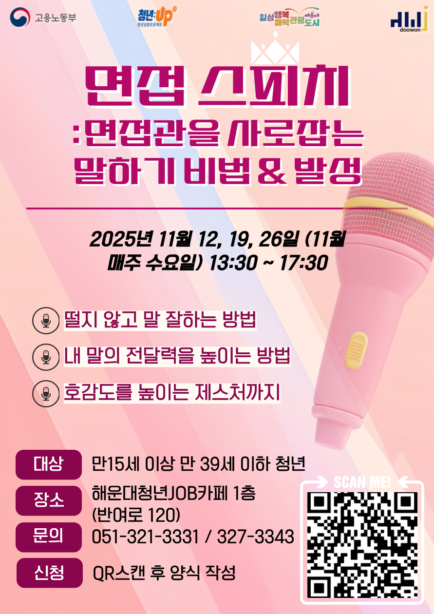면접 스피치 '면접관을 사로잡는 말하기 비법 & 발성'[해운대 청년JOB카페 드림포트 프로그램 안내]