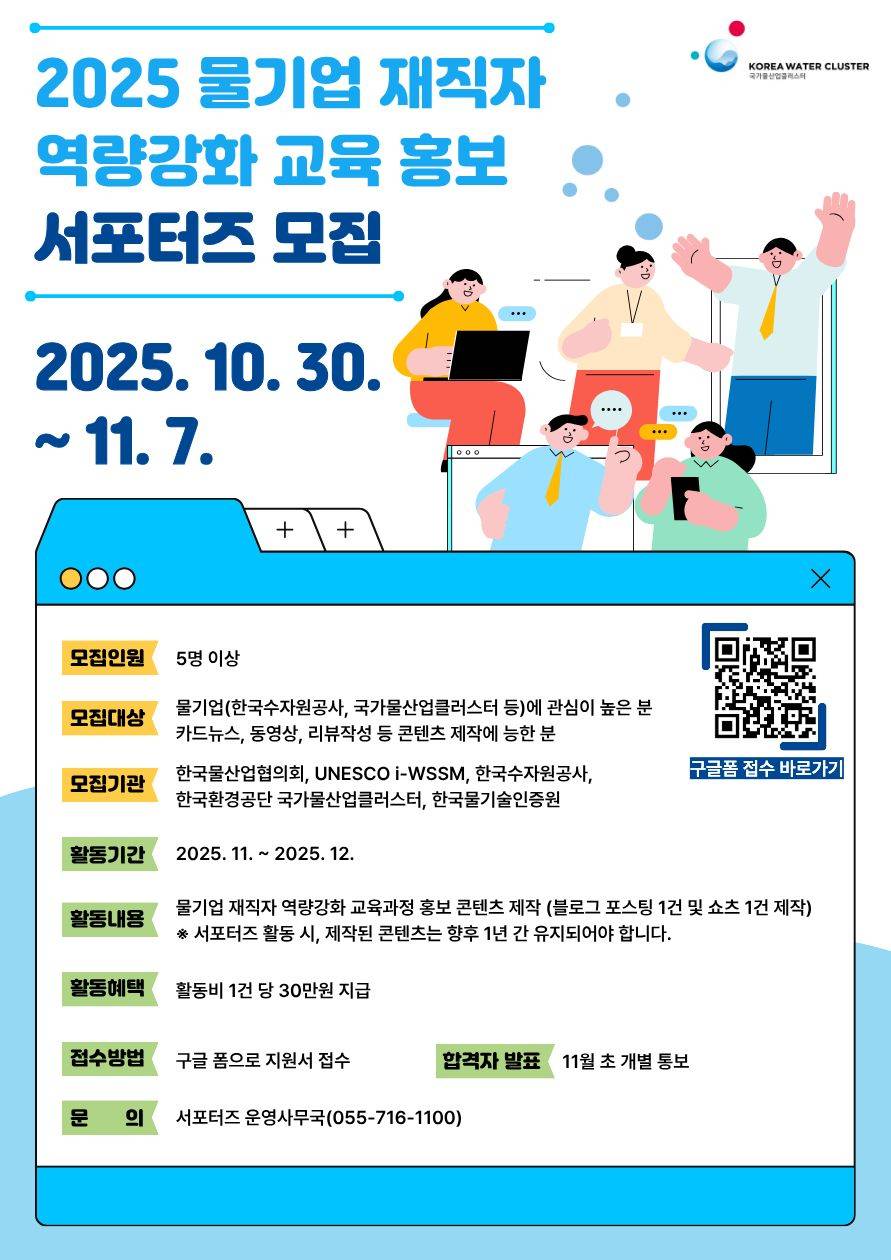 [국가물산업클러스터 워터캠퍼스부] 2025 물기업 재직자 역량강화 교육 홍보 서포터즈 모집<2025 물기업 재직자 역량강화 교육 홍보 서포터즈 모집 안내>