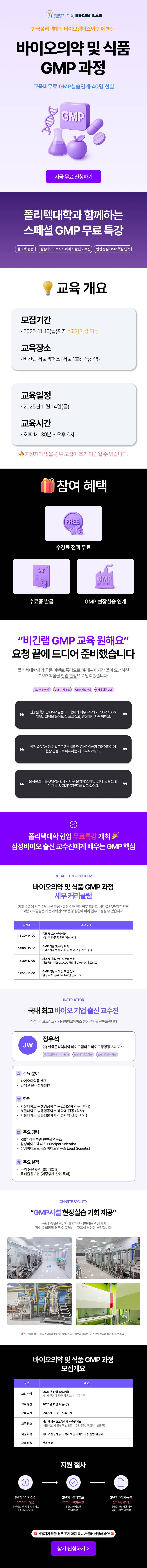 [한국폴리텍대학 바이오캠퍼스X비긴랩] 바이오의약 및 식품 GMP 과정 (전액무료)
