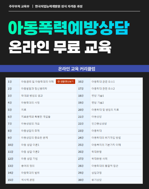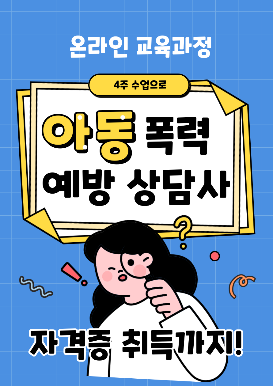 아동폭력 예방 상담사 온라인 자격증 교육과정 (4주 무료 참여가능)
