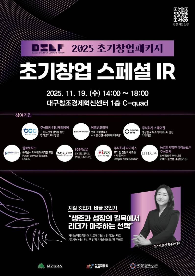 『2025년 대구스타트업 리더스포럼 초기창업 스페셜 IR』 현장 참가자 모집