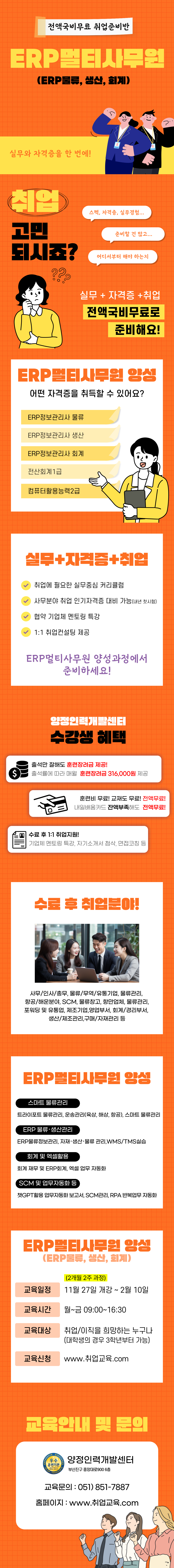 [전액국비/사무직 취업과정] ERP멀티사무원 양성 (ERP물류, 생산, 회계, 컴활)✅전액국비무료 <ERP멀티사무원 양성과정> 취업준비생을 모집합니다!