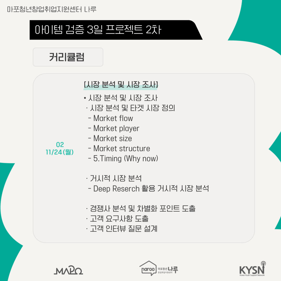 시장조사부터 인터뷰, 분석까지 직접 해보는 3일간의 아이템 검증 프로젝트를 준비했습니다.