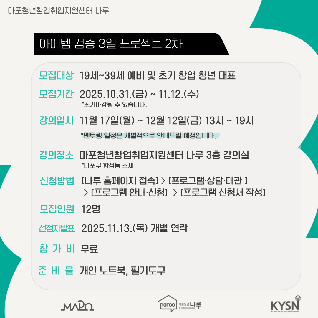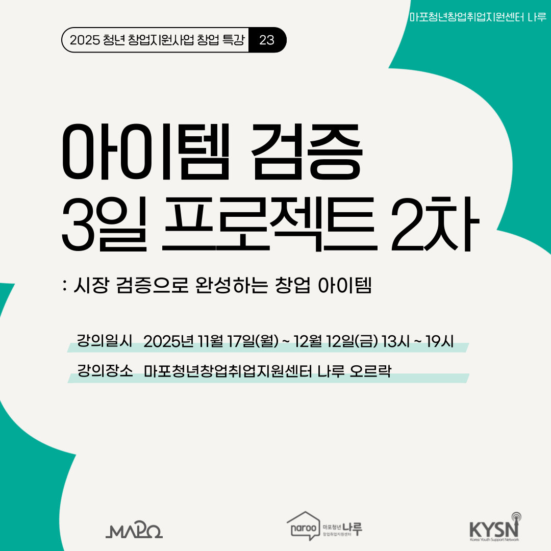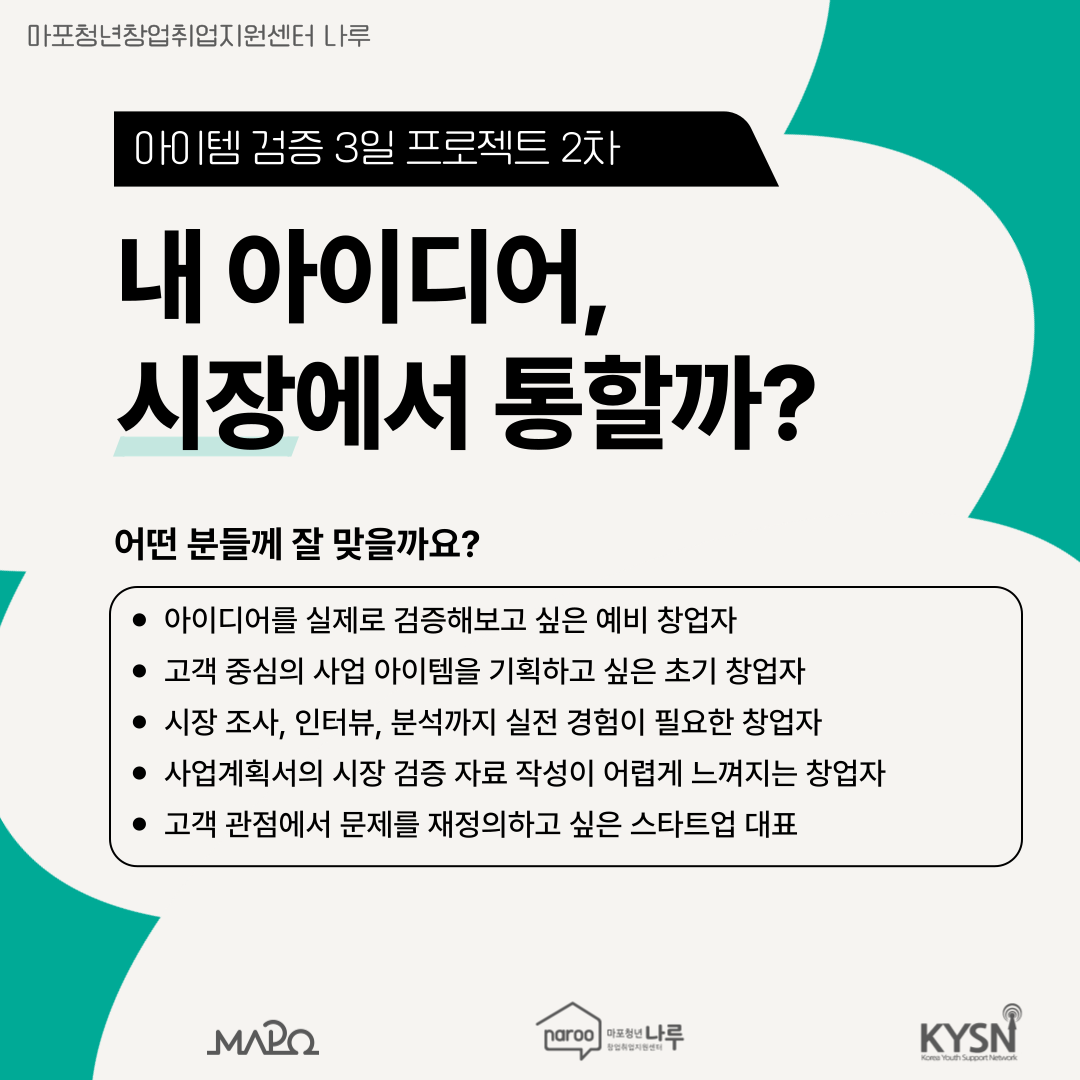 ✔“내 아이디어, 시장에서 통할까?”안녕하세요, 마포청년창업취업지원센터 나루입니다!