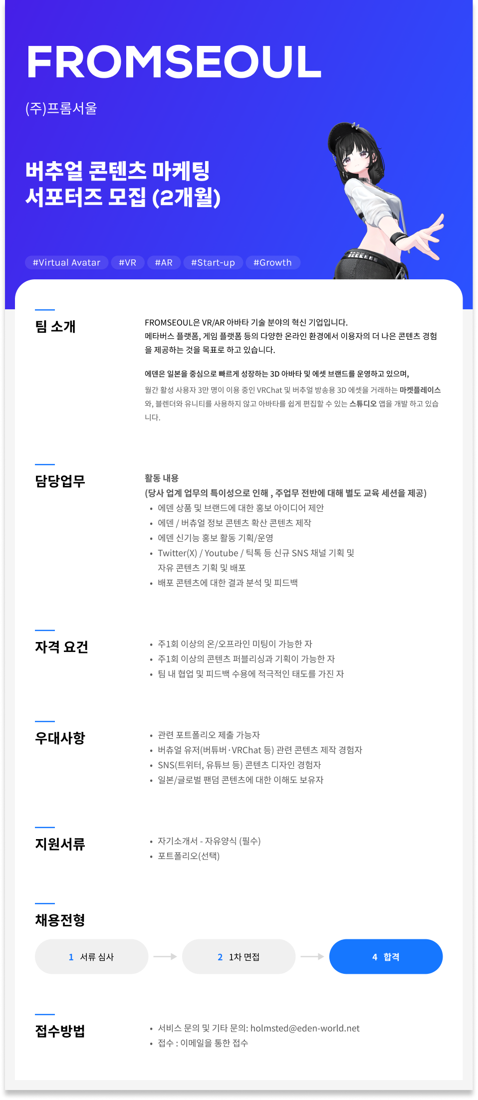 버튜버·버츄얼콘텐츠에 관심있는 콘텐츠 마케팅 서포터즈를 모집합니다❗