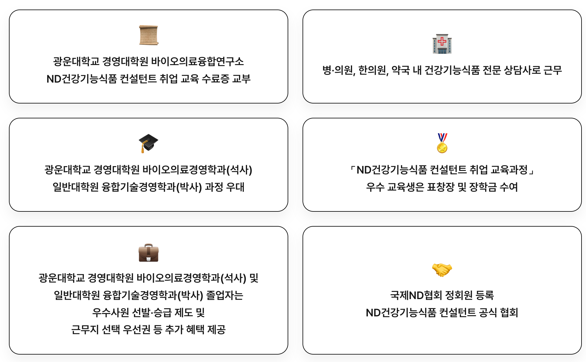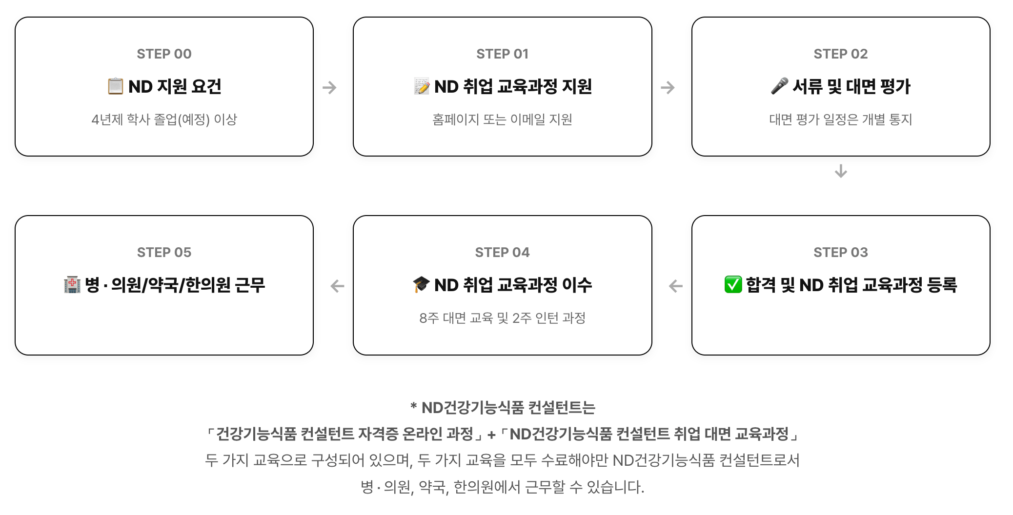 ND건강기능식품 컨설턴트 취업 교육과정 및 정규직 근무와 관련하여 아래 사항을 반드시 확인해주세요.