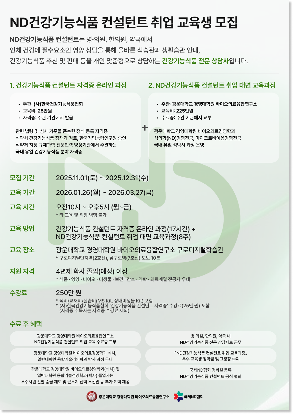⌜ND건강기능식품 컨설턴트 1기 교육생 모집⌟