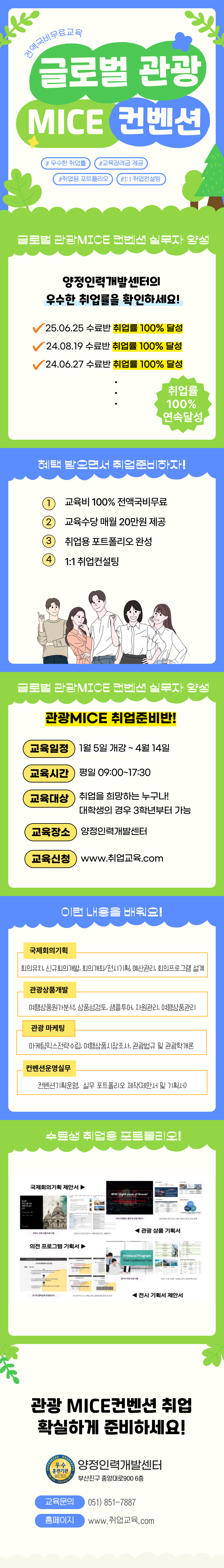 🚨이제는, 관광·MICE컨벤션 전문가로 양정인력개발센터에서 시작하세요!