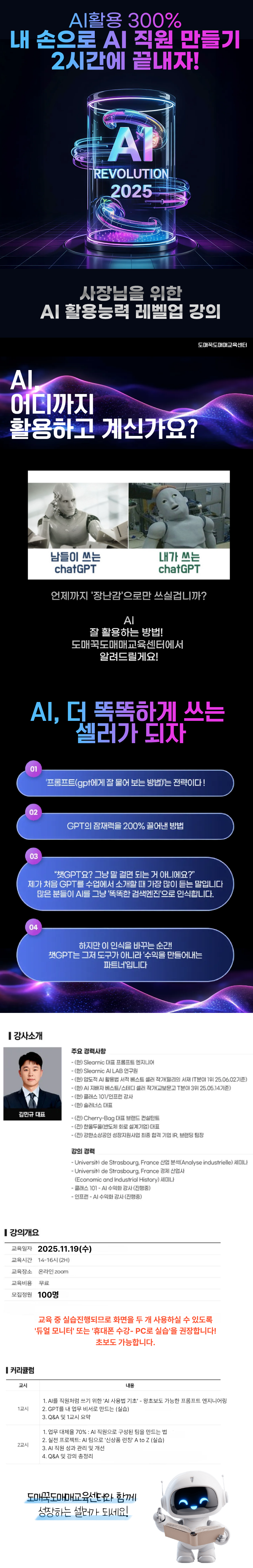 [온라인zoom] 11월 19일 (수) AI활용 300% : 내 손으로 직접 만드는 AI ,  AI 활용능력 레벨업