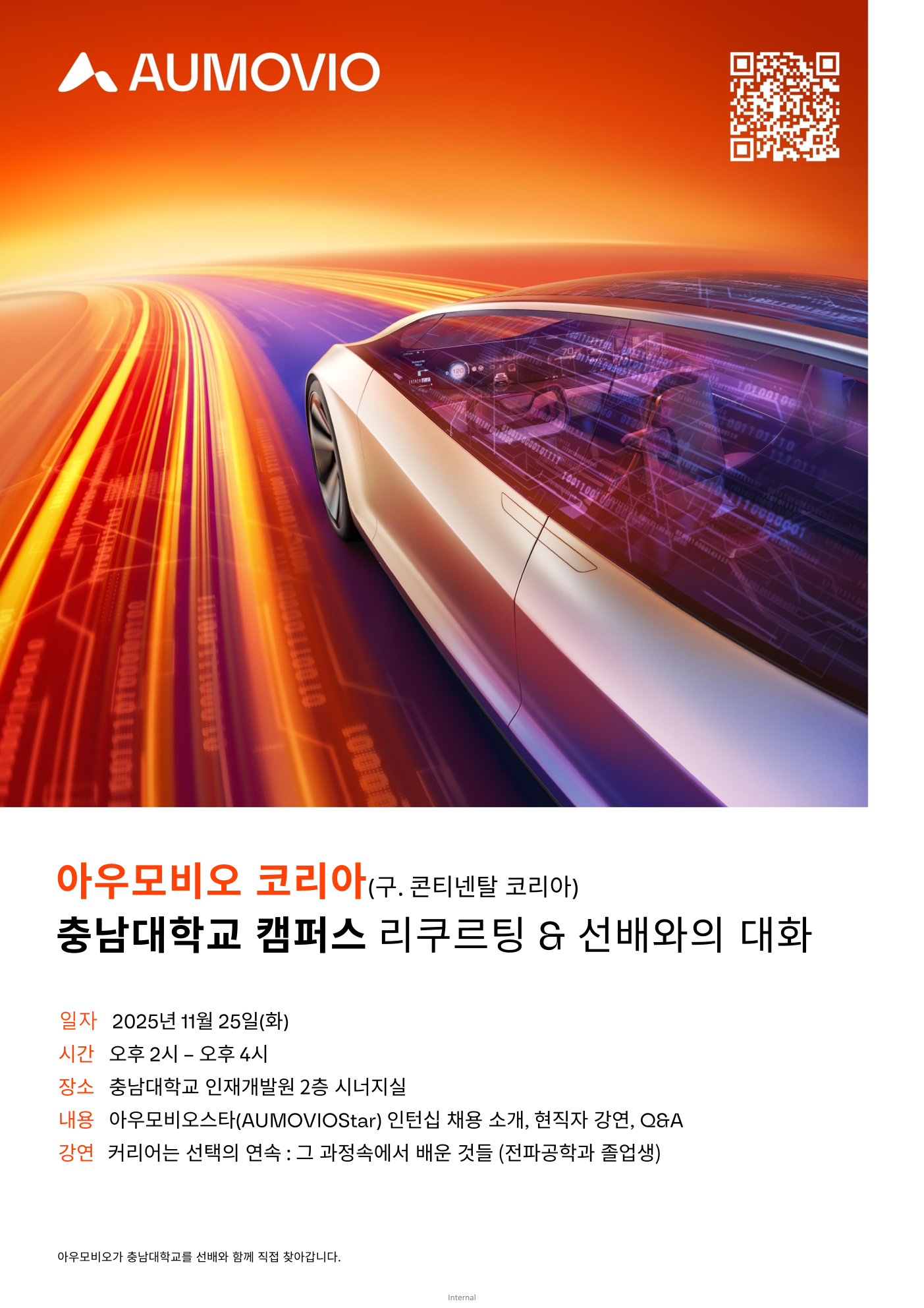 - 내용: 아우모비오스타(구. 콘티넨탈) 인턴십 채용소개, 졸업생 특강(전파공학과 졸업생)