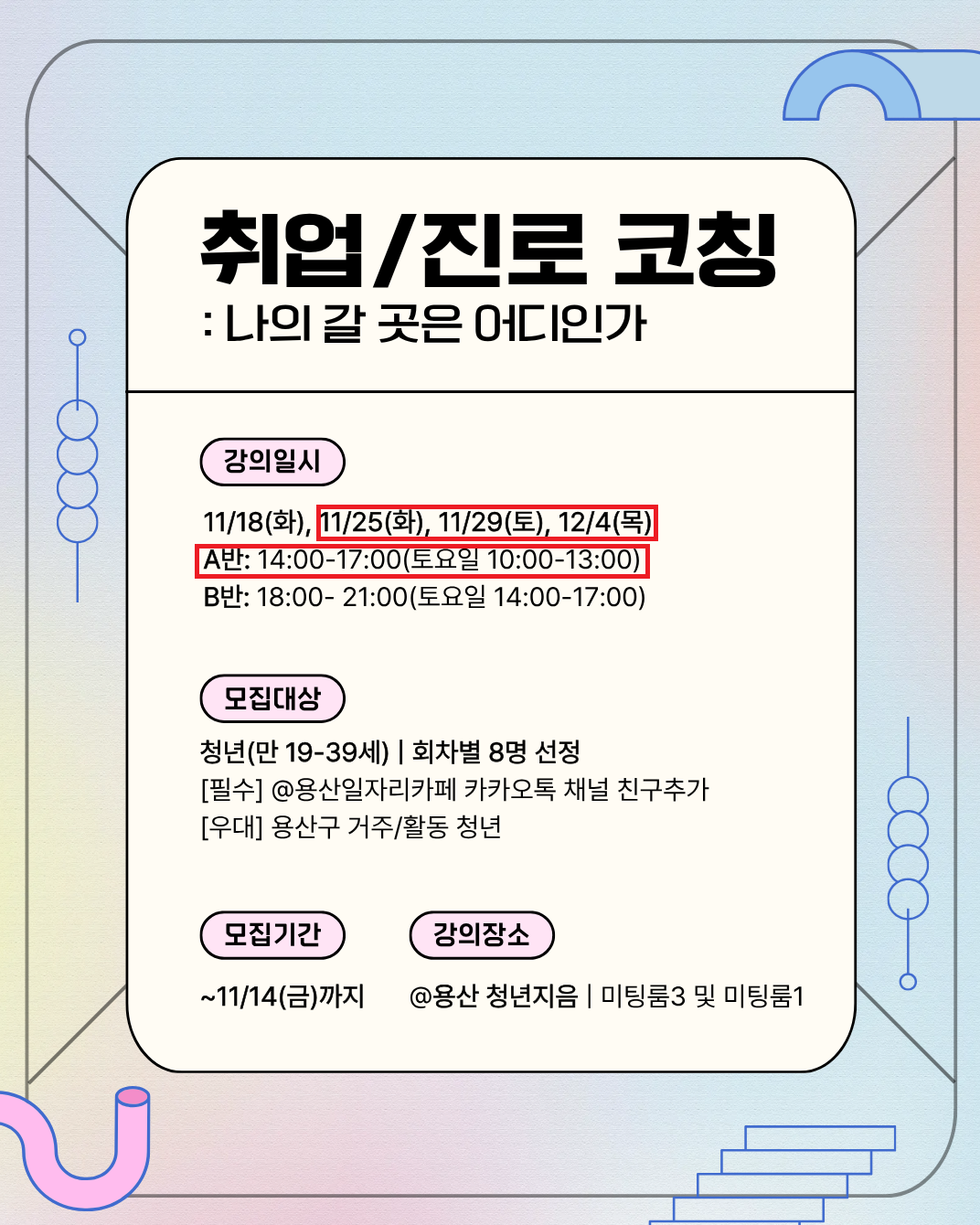 [진로워크숍] 취업/진로코칭 A반 추가모집
