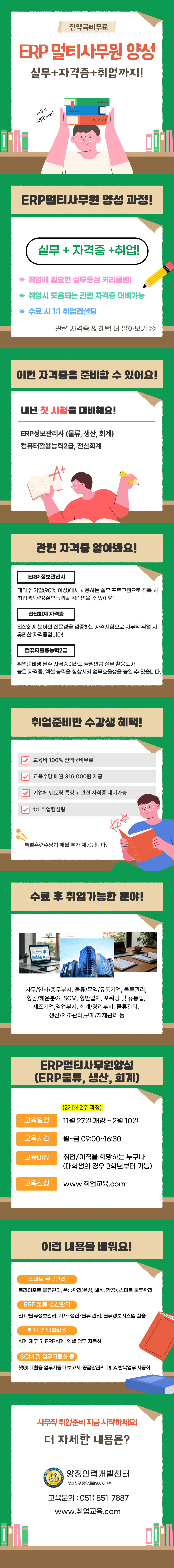 - 과정명 : 스마트 해양 물류관리 실무(ERP멀티사무원 양성)