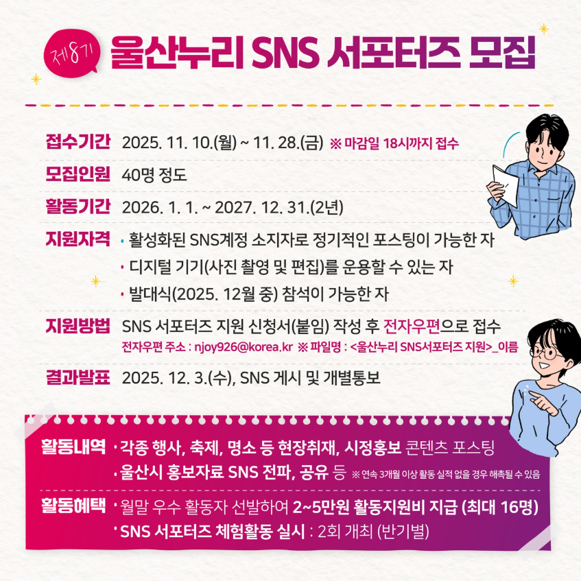 제8기 울산누리 SNS 서포터즈 모집🎉 제8기 울산누리 SNS 서포터즈 모집!