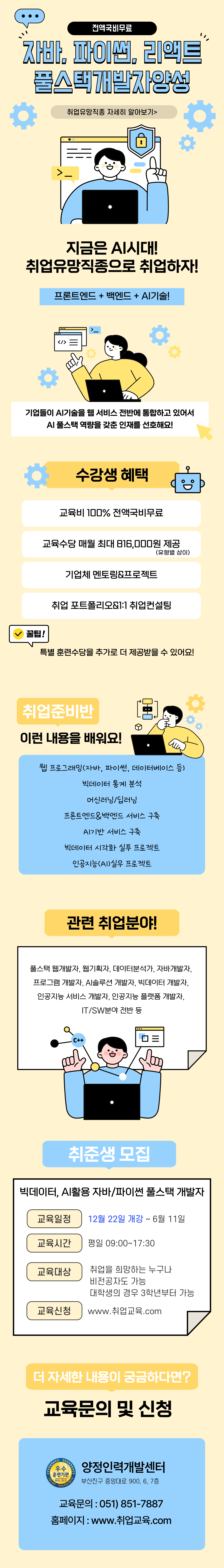 [전액국비무료] 자바, 파이썬, 리액트 풀스택 개발자 양성빅데이터·AI·파이썬 기반 풀스택 개발자 양성과정