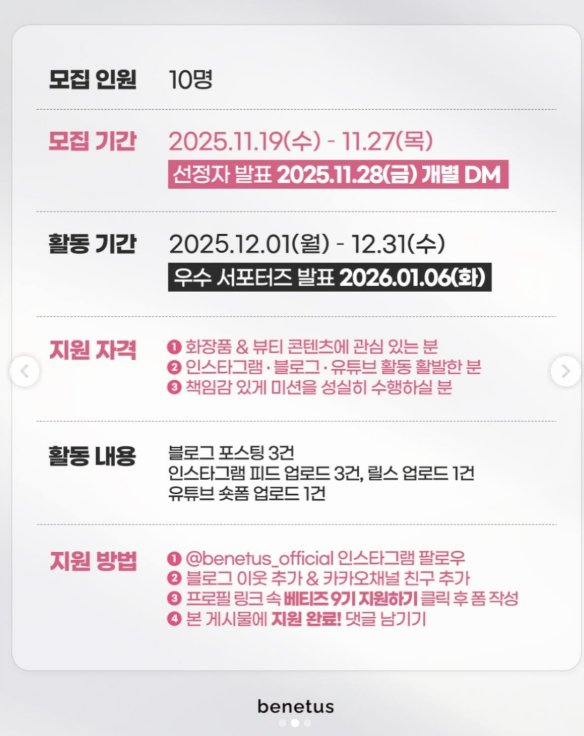[베네투스] 뷰티 서포터즈 ‘베티즈 9기’ 모집🎀 [베네투스 뷰티 서포터즈 ‘베티즈 9기’ 모집] 🎀