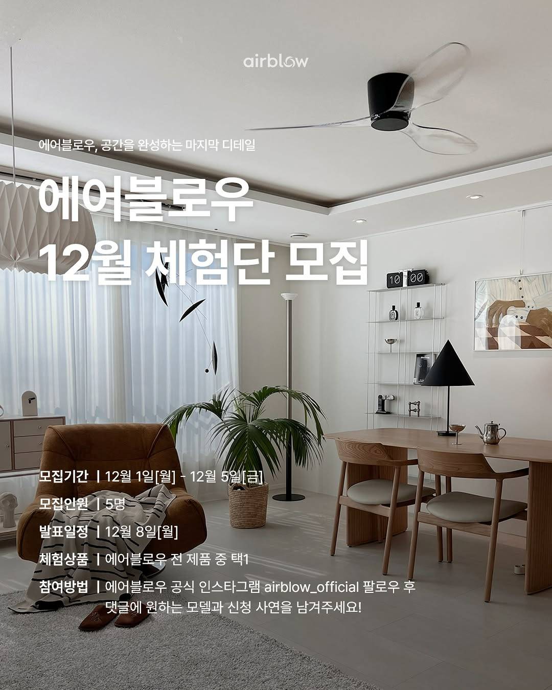 1. 에어블로우 공식 인스타그램 @airblow_official 팔로우