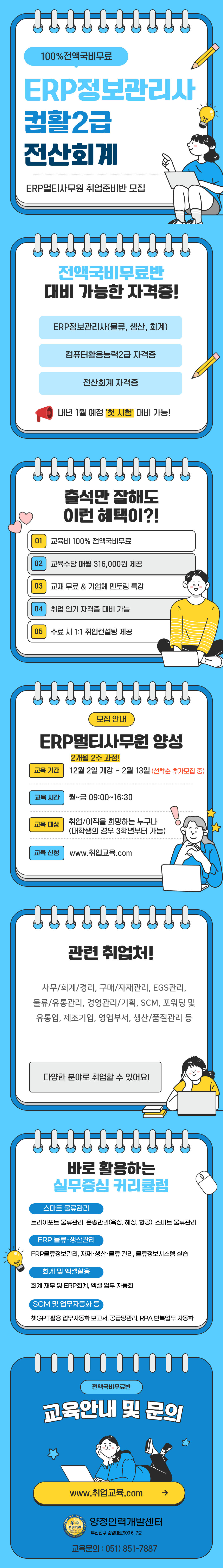 [전액국비무료] 물류・ERP・사무직 취업&자격증 준비반✅전액국비무료 <ERP멀티사무원 양성과정> 취업준비생을 모집합니다!