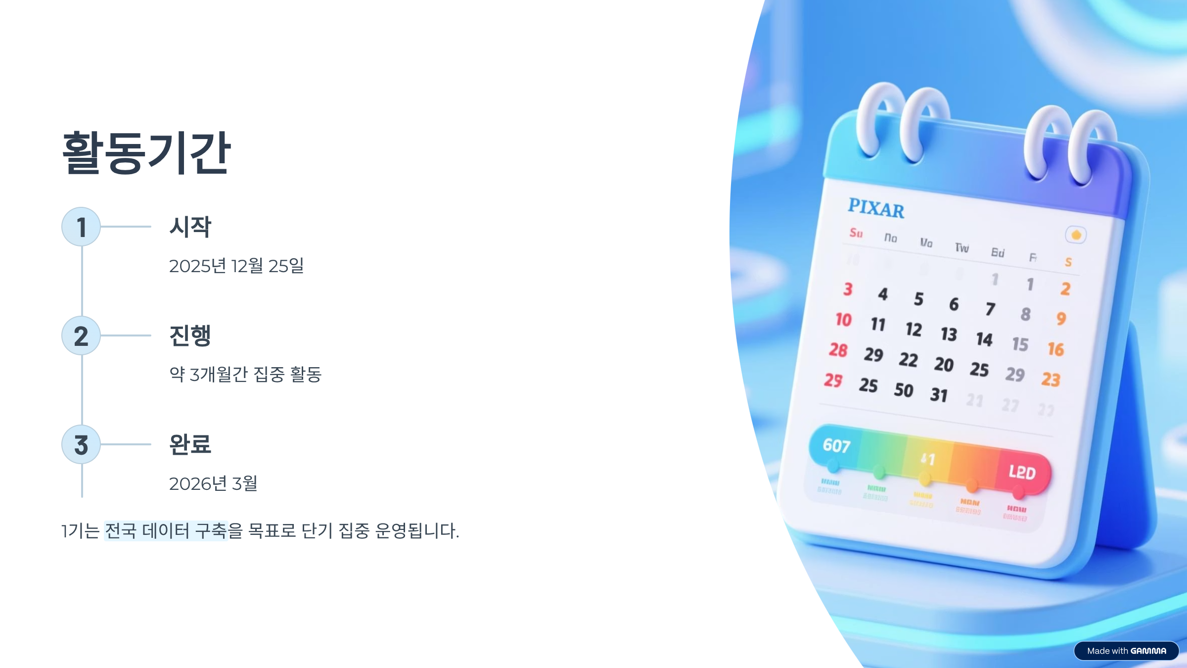 (1기는 ‘전국 데이터 구축’을 목표로 단기 집중 운영)