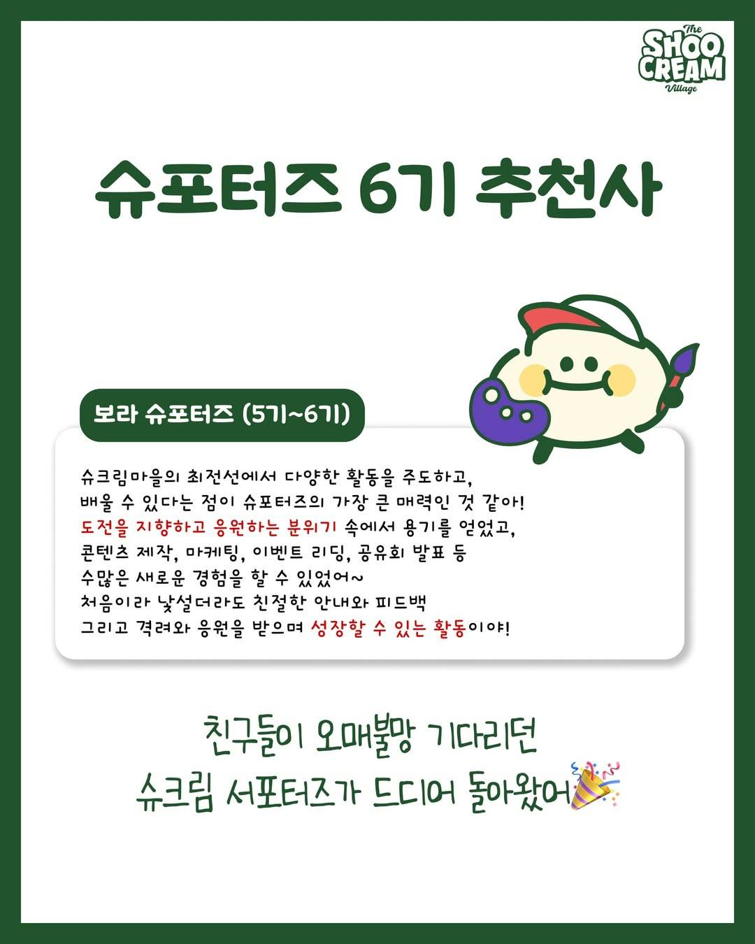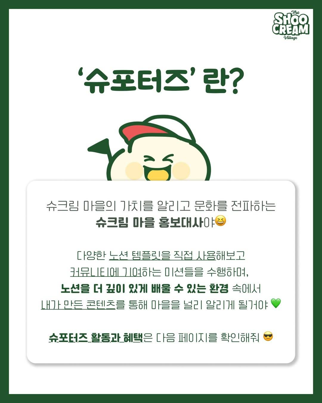 슈크림 마을 서포터즈 슈포터즈 7기드디어 슈포터즈 7기 모집 시작🎉
