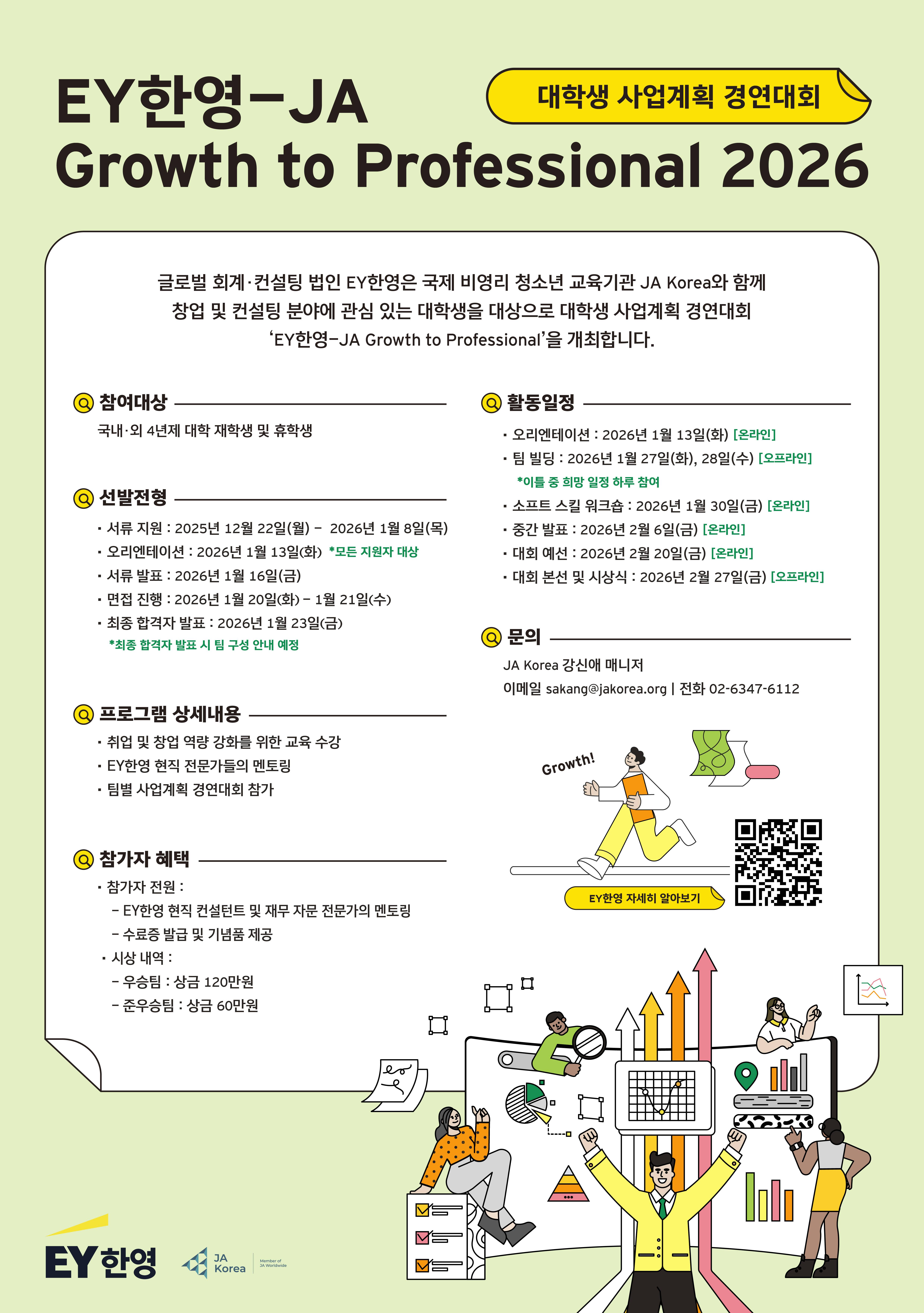 - 신청페이지 : EY한영-JA Korea Growth to Professional 2026 신청서