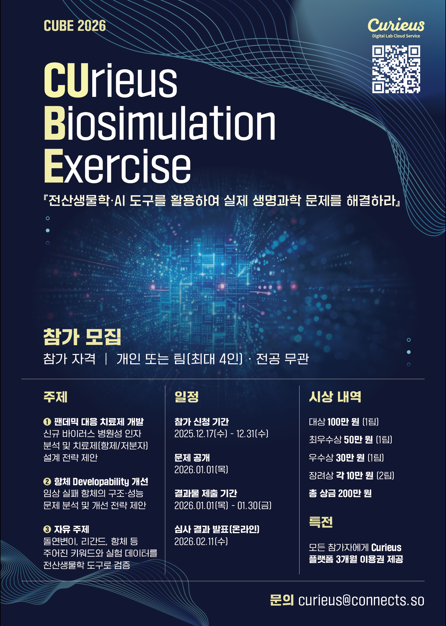 - 공모전명: Curieus Biosimulation Exercise 2026 (CUBE 2026)