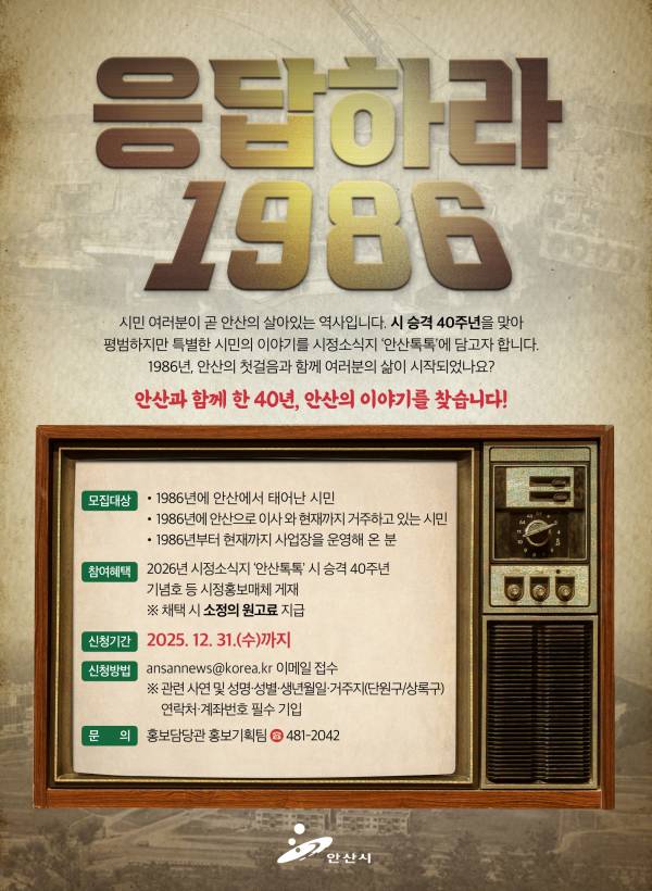 [응답하라 1986] 안산, 시 승격 40주년 맞아 시민 이야기 사연 공모■ 공모명