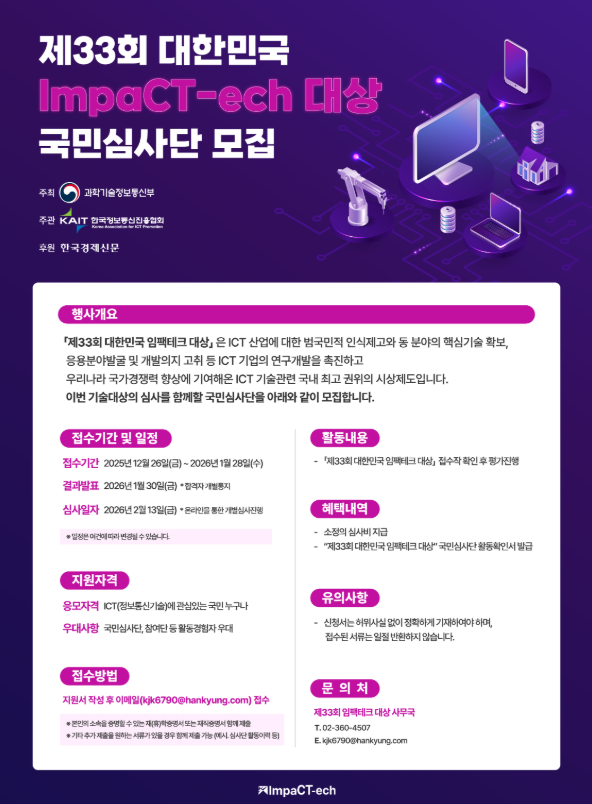 제33회 대한민국 임팩테크 대상 국민심사단 모집 안내제33회 대한민국 임팩테크 대상 국민심사단 모집 안내